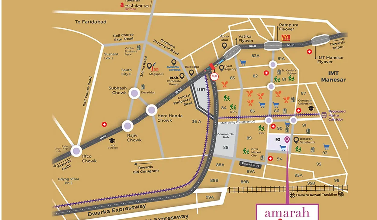 Ashiana Amarah is a luxury residential project built on sprawling wide acres land in Sector 93. The configurations on offer are 3 BHK Luxury Apartments with panoramic views of the wonderful surroundings, the Ashiana Amarah 93 apartments welcome you to live a lovely life with lots of smiles and desire. The ventilation and the natural flow of light in all rooms is simply astonishing, which will leave you fascinated. With a lot of well-planned services, this residential development is planned for a luxurious lifestyle like no other. Pre-Launch Ashiana Amarah Sector 93, Gurugram is a residential project that will meet all your requirements to live well for you and your family.